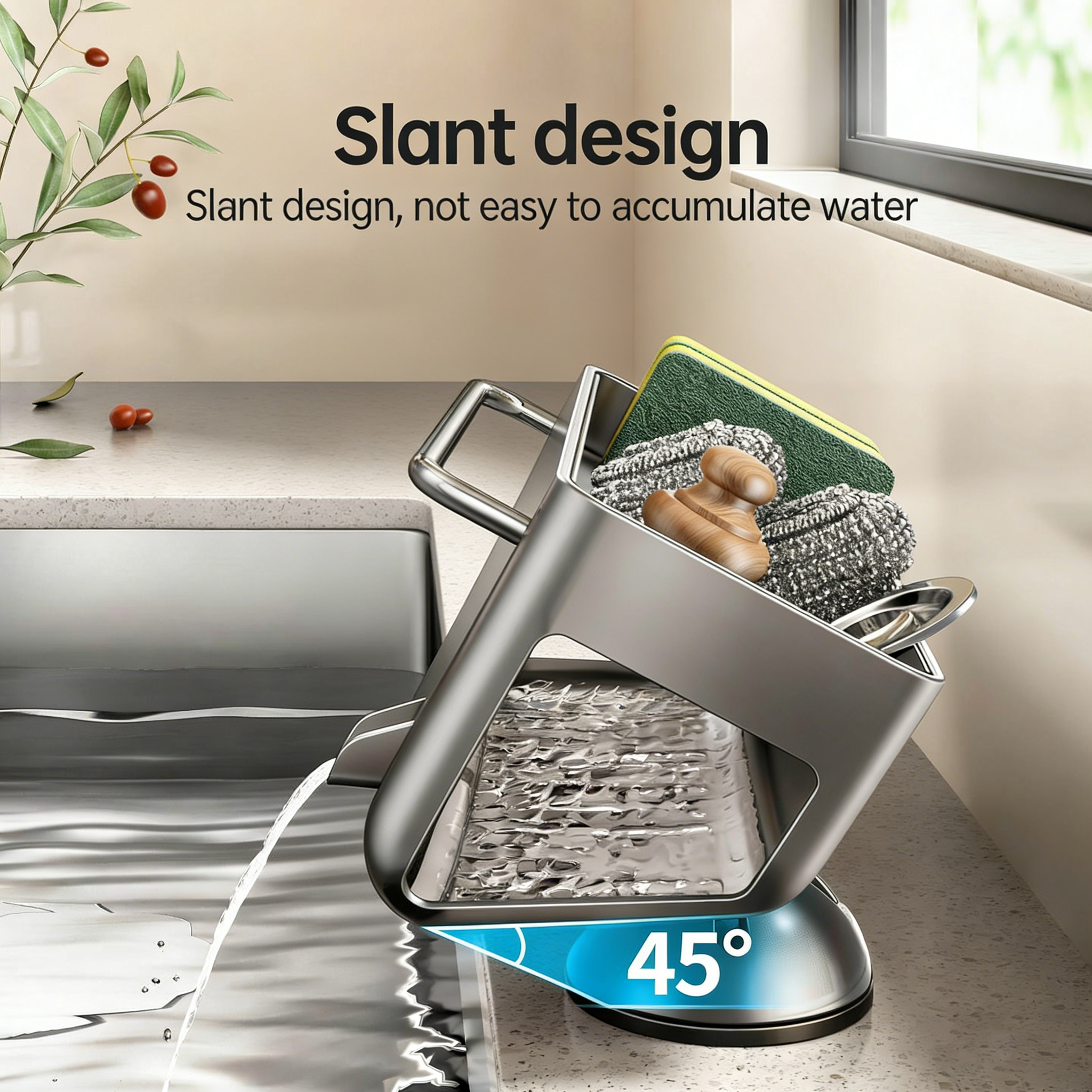 The 45° inclined structure allows water to drain quickly and efficiently, preventing water accumulate and keep your items dry and hygienic.
