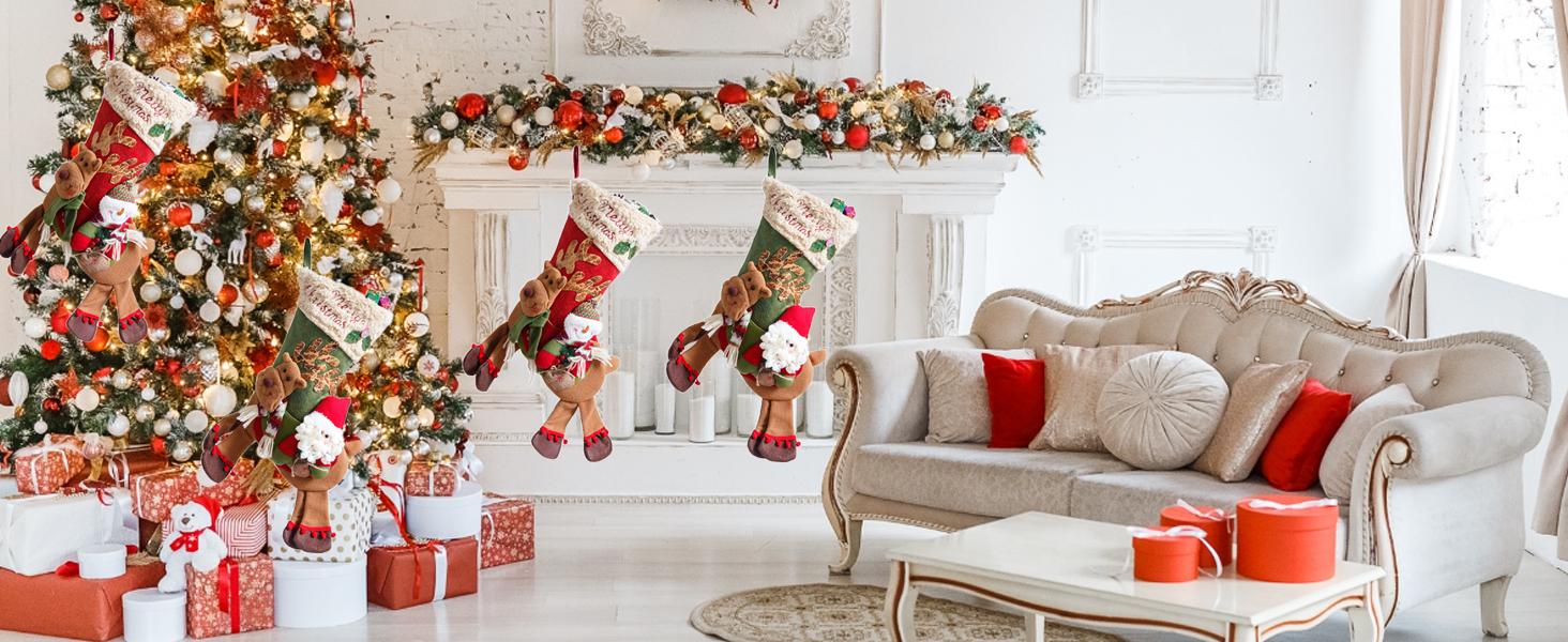 Creates a festive atmosphere; hang on the fireplace, doorknob, or Christmas tree.
